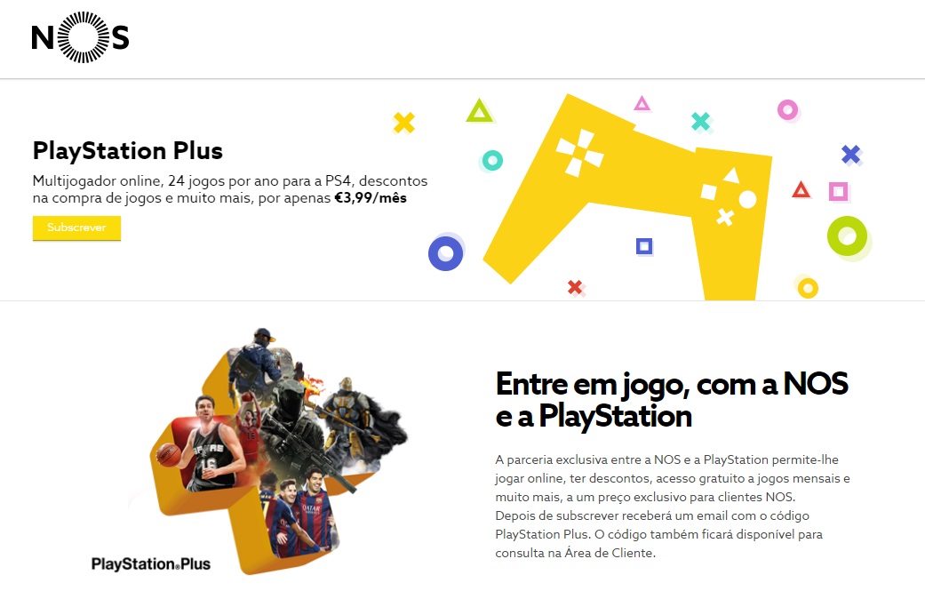 Até aqui o serviço PlayStation Plus - serviço multijogador online da Playstation 4 que dá acesso a 24 jogos para PS4® por ano, com possibilidade de jogar com mais de 20 milhões de jogadores em todo o mundo e com 10 GB de armazenamento em cloud que permitem guardar até mil ficheiros de jogos – está disponível em Portugal a partir de 6,99€ para uma subscrição de 1 mês. Com esta parceria entre a NOS e a PlayStation® os clientes da operadora com consola PS4 podem aceder ao serviço por apenas 3,99€/mês.